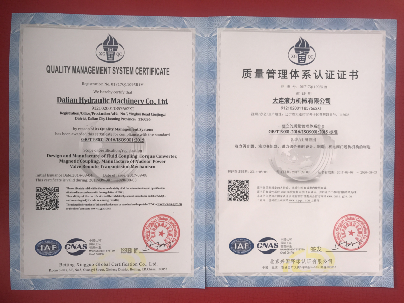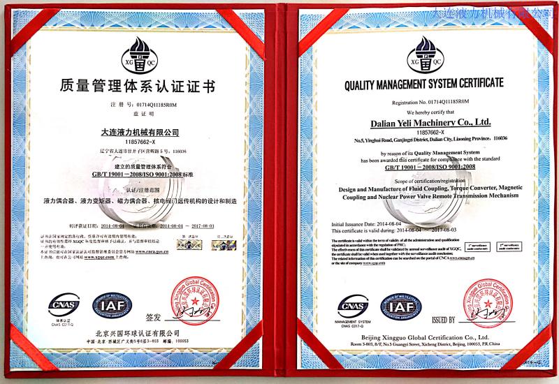 大連液力機(jī)械有限公司曾多次被評為省、市級先進(jìn)企業(yè)、文明單位;遼寧省“用戶滿意企業(yè)”、曾獲“遼寧五一獎(jiǎng)狀”,企業(yè)信譽(yù)良好,產(chǎn)品品牌廣為認(rèn)可。公司建立了完善的研制開發(fā)和質(zhì)量保證體系,在國內(nèi)液力行業(yè)較早通過ISO9001質(zhì)量體系認(rèn)證和包括職業(yè)健康、安全、環(huán)境三體系認(rèn)證,2015年又通過了國軍標(biāo)質(zhì)量體系認(rèn)證。企業(yè)連續(xù)二十余年被省、市工商局評為“重合同、守信用”單位,二〇〇二年獲國家統(tǒng)計(jì)局“遼寧省信譽(yù)優(yōu)秀企業(yè)”,連續(xù)多年被評為“AAA”級信用企業(yè),公司主導(dǎo)產(chǎn)品連續(xù)多年獲遼寧省和大連市名牌產(chǎn)品,2008年至今是大連市高新技術(shù)企業(yè)認(rèn)證企業(yè)。